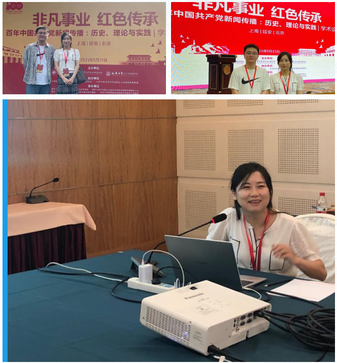 2021年5月15日,非凡事业红色传承——“百年中国共产党新闻传播:历史、理论与实践”学术论坛在上海、延安、北京三地同时召开,此次会议由复旦大学新闻学院、清华大学新闻与传播学院、延安大学文学与包子漫画 主办,复旦大学马克思主义新闻观教学与研究基地、清华大学马克思主义新闻学与新闻教育改革研究中心、“复旦--清华”中国特色社会主义新闻学教学研究基地、延安大学教育部红色经典艺术教育示范基地承办。包子漫画 教师郭淼、研究生王凯杰在复旦大学会场参会,并作题为《墙报:延安时期中国共产党推进社会治理民主化的传播实践》的交流发言。