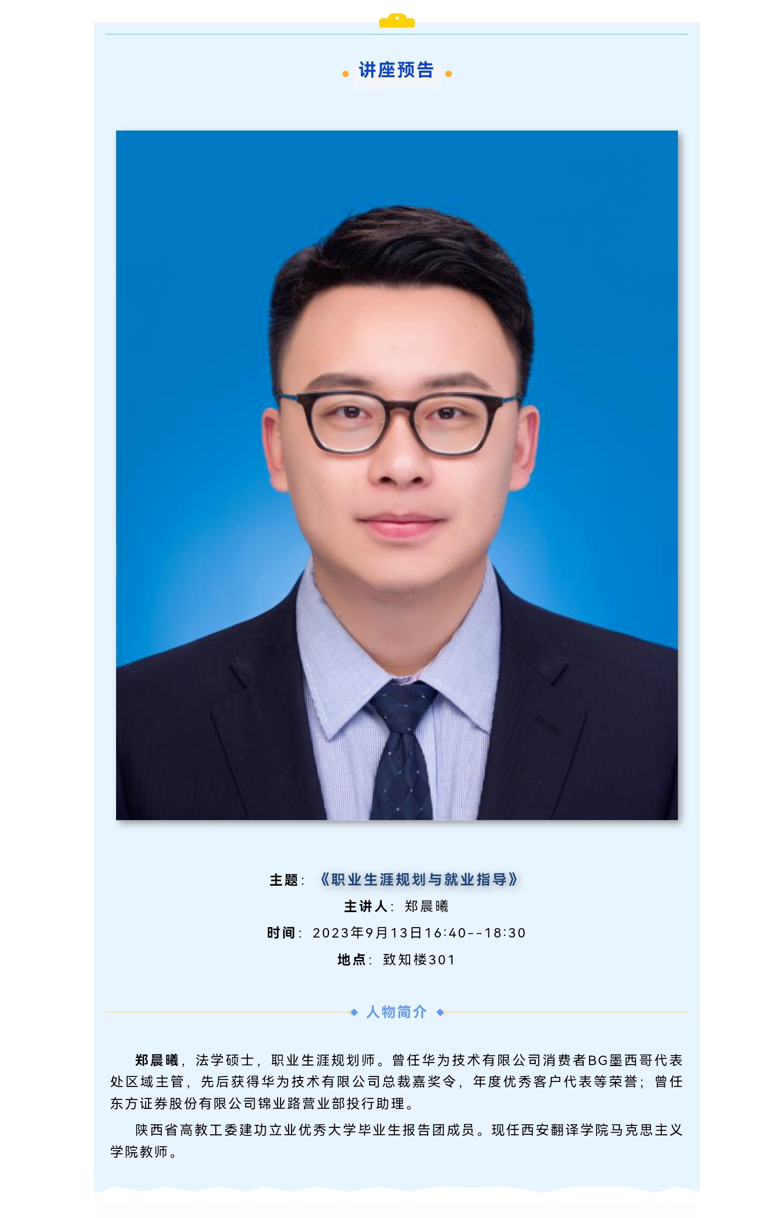 就业引航讲座预告|郑晨曦:职业生涯规划与就业指导