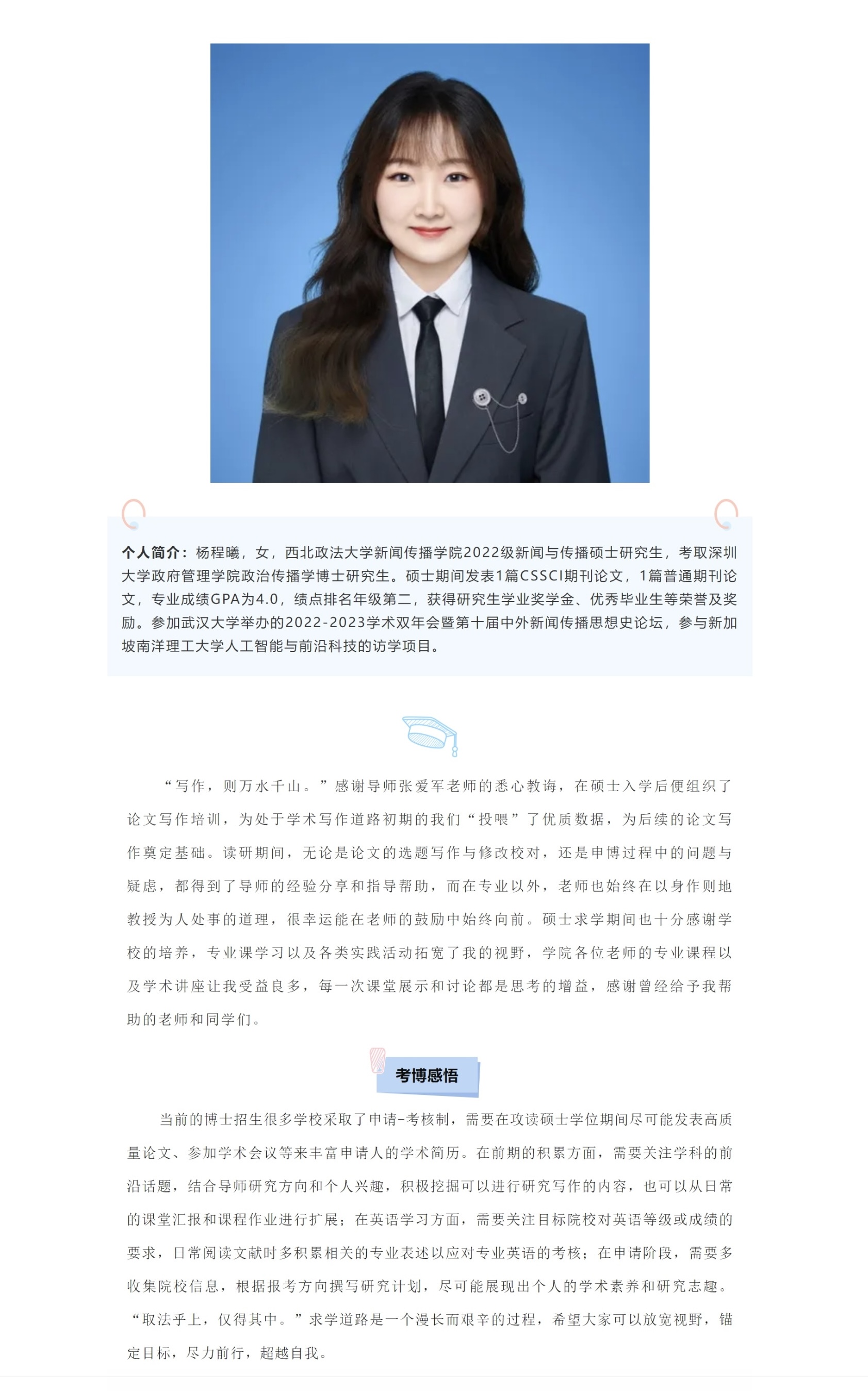 考博榜样② | 杨程曦:行远自迩,笃行不怠