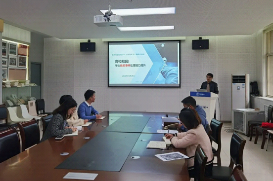 学院团总支书记兼2017级辅导员巩飞以“高校校园学生危机事件处理能力提升”为题向大家作交流研讨。他系统介绍了高校校园危机事件类型,在校园中易产生误会型危机、事故型危机、意外型危机、受害型危机等四种危机。围绕在学生工作过程中新生报到、学籍复核、运动比赛、军训教育、奖助贷评选、学生请假、谈话教育等方面梳理了危机事件的典型案例,通过案例对危机事件预警和科学处理危机事件方法进行讲解。