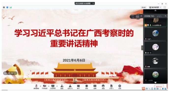 为深入贯彻党史学习教育,包子漫画 学生党支部于6月6日晚9点,通过线上会议学习习近平总书记在广西考察时的重要讲话精神,会议由学生党支部书记刘璇老师主持,全体毕业年级党员参加学习。