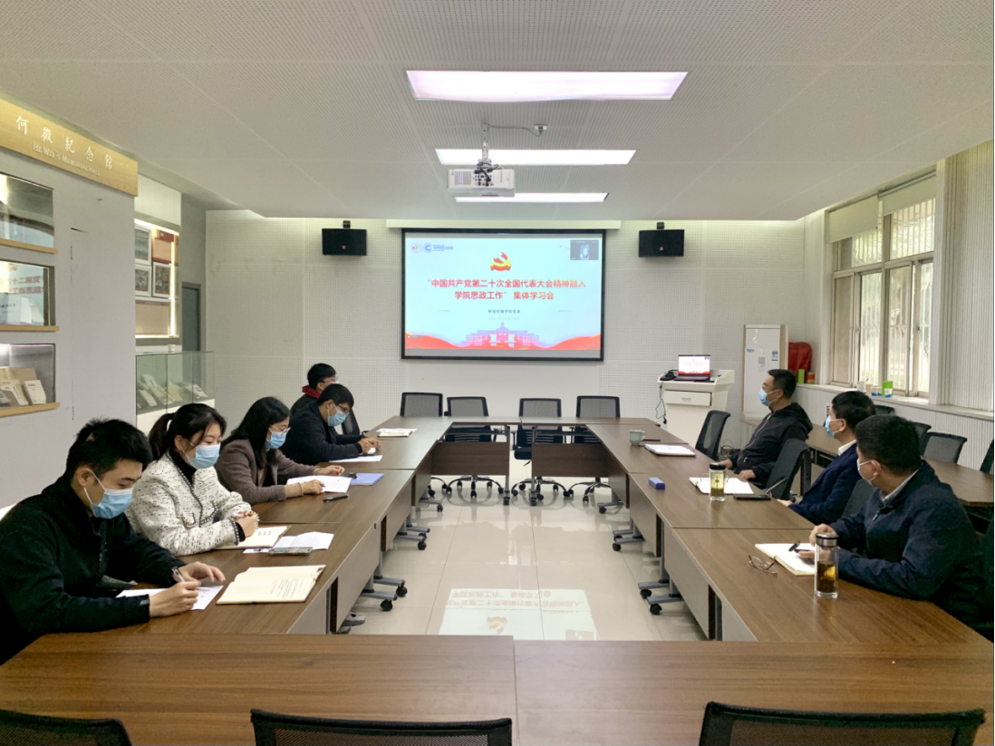 党委以线上线下结合形式召开“将党的二十大精神融入学院思政工作”学习会,专题学习中国共产党第二十次全国代表大会精神,对在全院思政工作中学习宣传贯彻党的二十大精神进行安排。校党委副书记、纪委书记肖道远,校党委委员、宣传部长燕福民,学院党团干部、思政课教师及全体辅导员参加会议。学院党委书记刘渊主持会议。