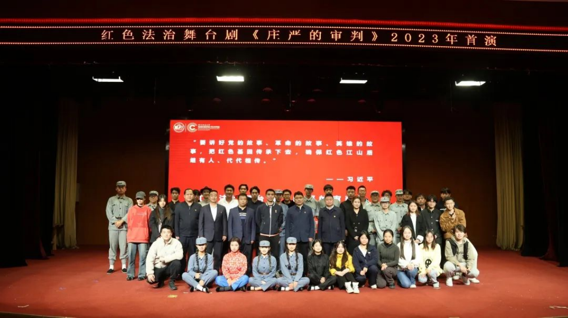 习近平总书记近日在辽宁考察时强调“要讲好党的故事、革命的故事、英雄的故事,把红色基因传承下去,确保红色江山后继有人、代代相传。”在全校上下认真学习贯彻习近平总书记对宣传思想文化工作的重要指示以及全国宣传思想文化工作会议精神的热潮中,《庄严的审判》(2023版)作为沉浸式微党课红色育人实践活动再次搬上舞台,将理想信念教育、法治教育、红色文化教育紧密结合,是学校对习近平法治思想和习近平文化思想的贯彻落实和具体践行,也是探索新时代高等教育如何用好红色资源、上好文艺党课的重要举措。