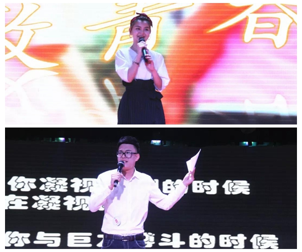 第一环节里,来自不同学校,不同学院的12位选手展示他们独特的才艺,或朗诵,或舞蹈,或配音秀,或脱口秀,他们在舞台上发光发热,展现独有的青春风采。
