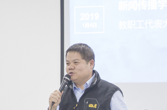 在致知楼现代传播实验中心顺利召开了2018年度教职工代表大会,学院领导班子成员,全体教职工参加大会,会议由学院工会主席刘驰主持。