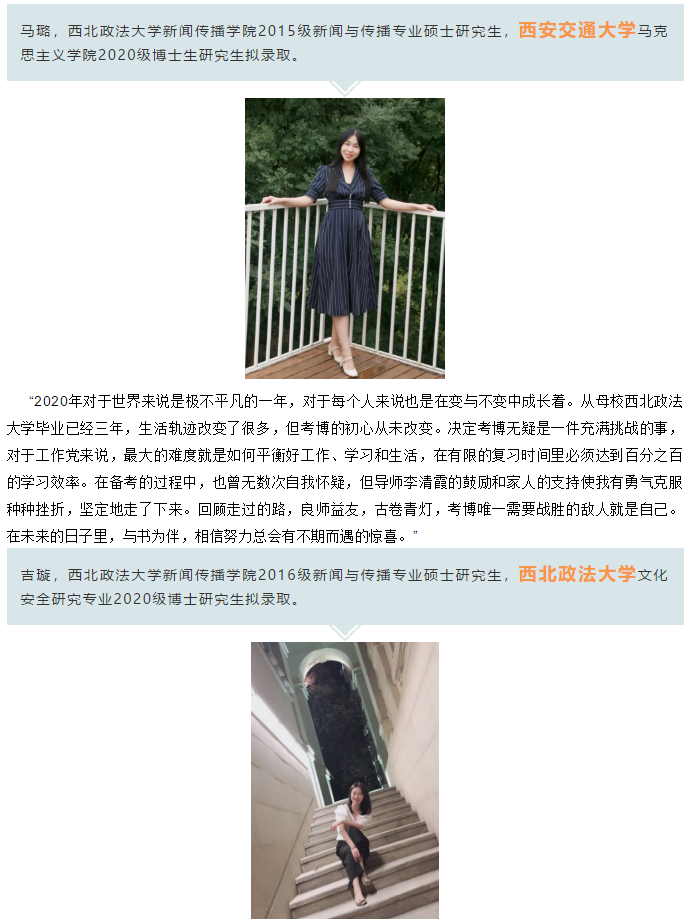 2020年,新传院应届生6位同学考取博士研究生。在这个毕业季,我们还采访了往届考取博士研究生的6位同学,一起回顾他们考博路上或读博期间的点点滴滴。