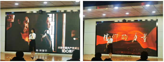 徐珂以“信仰的力量”为主题,以安徽合肥的延乔路为切入口,为我们讲述了陈延年、陈乔年的故事,并提出“先辈革命者们用信仰之光指引着后人前行”,以此来突出“信仰的力量”。在演讲的最后,徐珂结合时代背景,提出新时代青年人要担负起自己的责任,并表达了自己对党的热爱。