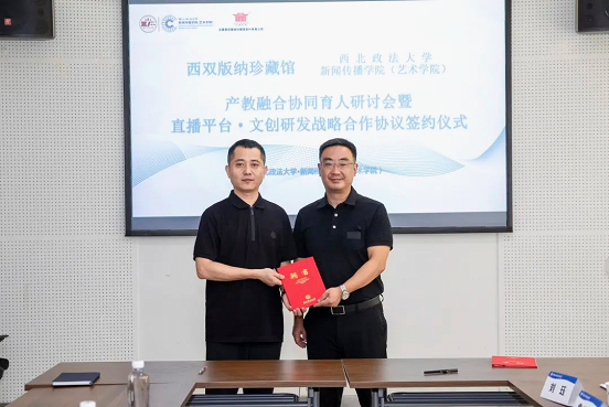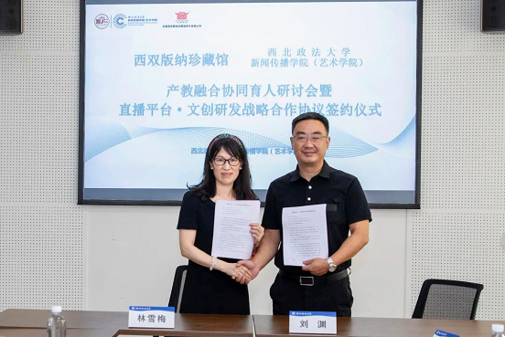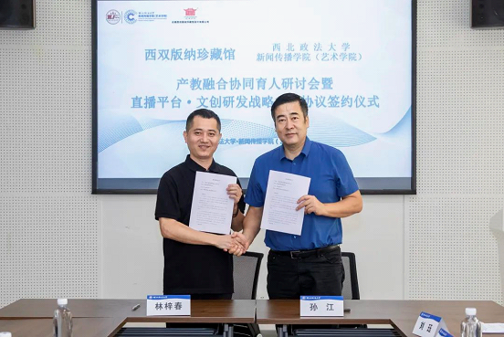 9月16日上午,西双版纳珍藏馆与包子漫画 产教融合协同育人研讨会暨直播平台·文创研发战略合作协议签约仪式在我校长安校区何微纪念馆举行。云南西双版纳珍藏馆茶业有限公司董事长林梓春、总经理林雪梅,北京青年报记者徐焱出席活动,包子漫画 党政班子、教师代表参加活动。学院院长孙江主持活动。